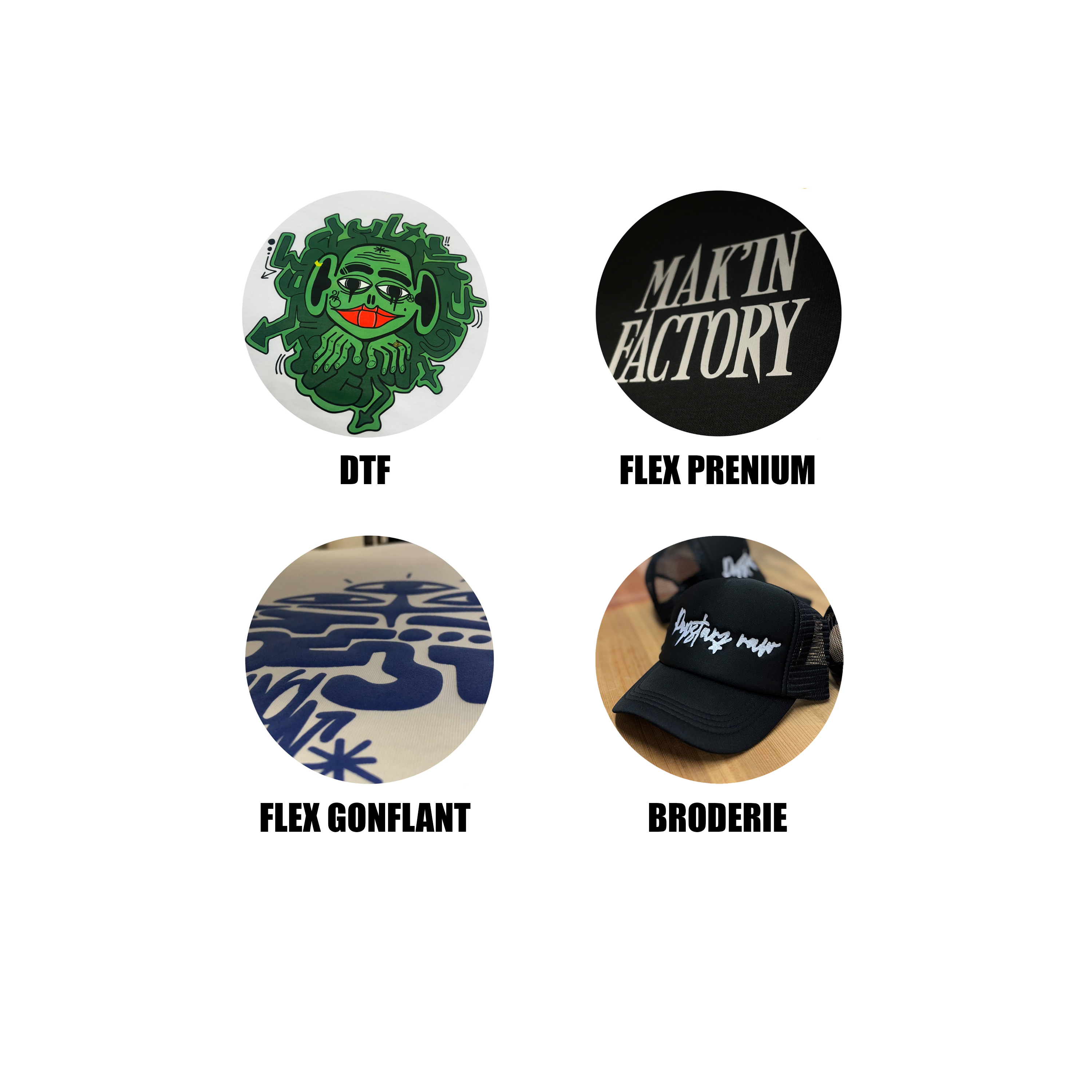 C’est notre savoir-faire. Nous proposons différents types d’impression textile (DTF, broderie, flocage…) pour s’adapter à chaque besoin. Chaque technique est réalisée avec soin dans notre atelier afin de garantir une excellente tenue, des couleurs éclatantes et une qualité qui dure dans le temps.
